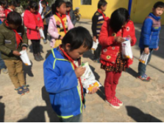 我们给孩子们准备了小礼物——文具,孩子们拿到文具时笑得特别开心。从“党群心连心”平台招募的志愿者为每个学校的10位贫困学生发放了棉被,还有一些爱心人士捐赠的帽子、围巾等。妇幼保健院医生们尽职尽责,头一天晚上还在上夜班,下班后立马赶