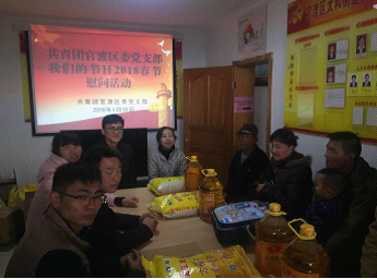 为弘扬中华民族优秀传统文化,进一步丰富人民群众的文化生活,让广大群众深切的感受到传统节日的独特魅力,发挥传统节日在弘扬中华民族优秀传统文化和加强公民思想道德建设中的重要作用,文明过春节。1月30日下午团区委党支部来到黄家庄社区开展“我们的节日·春节” 慰问活动。