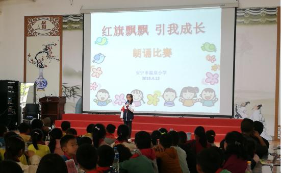 2018年4月20日,温泉小学“红旗飘飘 引我成长”朗诵比赛决赛在学校礼堂举行。