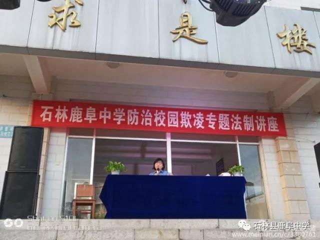 为构建和谐校园,促进学生的身心健康发展,预防校园欺凌等事件的发生,2018年5月7日,石林县鹿阜中学德安处特邀石林县检察院徐瑞芳,昂玮两位检察官为西校区八年级全体师生作了主题为“防治校园欺凌”的专题法制讲座。
