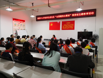 为进一步巩固“创建全国文明城市”成果,更好地调动和发挥学校师生参与志愿者服务活动的热情,让师生进一步了解、关注身边“志愿者团队”,2018年5月10日下午14:00,南坝中心学校组织部分老师和学生代表,走进世纪半岛社区,走进“全国最美志愿者”服务站开展主题志愿服务教育活动。