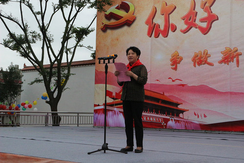 本次活动上还进行了新队员入队仪式,被批准入队的新队员整齐排列在队旗下,党员代表、团员代表、家长代表、老队员代表为新队员授戴了红领巾并进行了庄严的宣誓,铿锵有力的声音表达了他们的心声。共青团寻甸县委书记周涛为仁德四小新入队少先队授予队旗。共青团寻甸县委副书记张晓霞为新聘任的少先队辅导员颁发聘书,仁德四小党支部书记代表全体师生为孩子们送上节日的祝福,也对孩子们提出了殷切的希望。入队仪式在激动人心的呼号中结束——时刻准备着,为共产主义事业而奋斗!