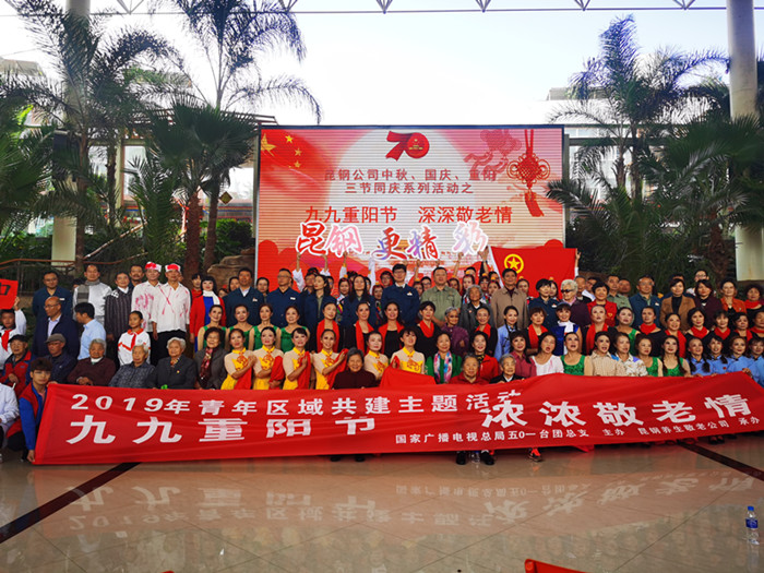 敬老爱老是中华民族的传统美德,为更好地弘扬中华民族敬老、养老、助老传统文化,形成尊老、爱老的良好氛围,2019年10月9日上午金方街道团工委、国家广播电视总局五〇一台团总支、昆钢团委联合在昆钢养生敬老中心开展了以“九九重阳节 浓浓敬老情”为主题的系列活动。本次活动由五〇一台团总支承办,共有昆明工职院、昆钢医院等16家区域共建单位的300余名青年志愿者参与。
