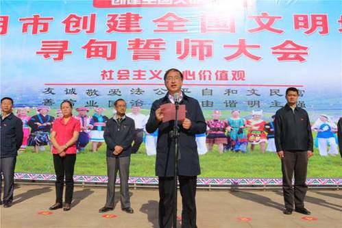 为进一步贯彻落实中央文明委会议、全国创建文明城市工作经验交流会精神和省、市文明委工作部署。2017年4月19日,寻甸县在县城民族广场举行昆明市创建全国文明城市寻甸誓师大会。县委、县人大常委会、县人民政府、县政协领导班子成员出席会议,县直各单位及各乡镇(街道)主要领导,青年志愿者及各行各业人员代表700余人参加誓师大会。会议由县委副书记、县人民政府县长马郡主持。