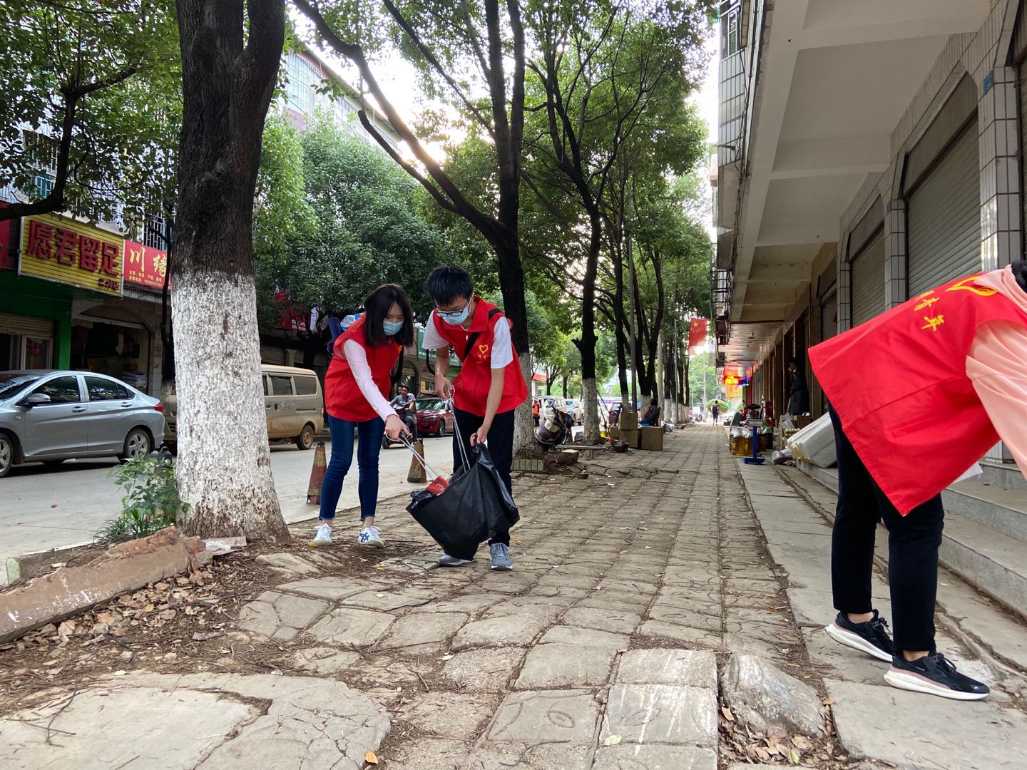 2020年6月2日,由团县委、教体局、卫健局、财政局、纪委、税务局组成的第一支志愿者小队对玉明路、武侯路、丰登路进行卫生大扫除志愿活动,志愿者认真清扫马路两边人行横道上的烟头、白色垃圾、果皮碎屑,并将花台中的垃圾进行了拾取,清扫卫生死角,清除暴露性生活垃圾等。