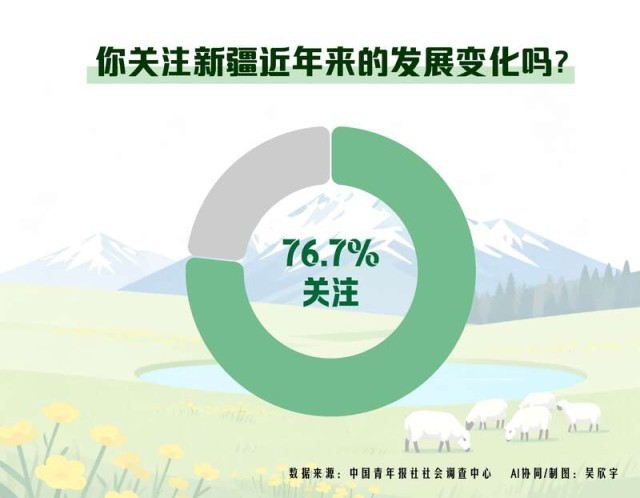 今年是新疆维吾尔自治区成立70周年。近年来,《我的阿勒泰》等影视剧的热播掀起一波新疆旅游热潮,新疆也受到越来越多人的关注。上周,中国青年报社社会调查中心联合问卷网,对1668名青年进行的一项调查显示,61.0%的受访青年去过新疆。76.7%的受访青年关注新疆近年来的发展变化。社交媒体平台(65.3%)和新闻媒体报道(60.0%)是受访青年关注新疆的主要渠道。