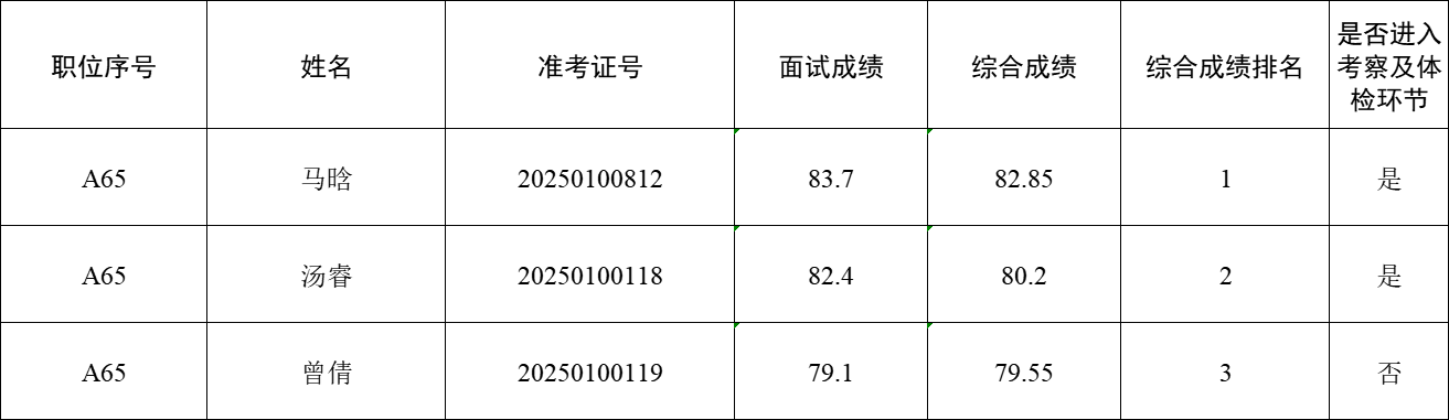 根据《2025年度昆明市市级机关公开遴选公务员公告》要求,现将共青团昆明市委2025年度公开遴选公务员进入面试环节报考人员面试成绩及综合成绩公布如下: